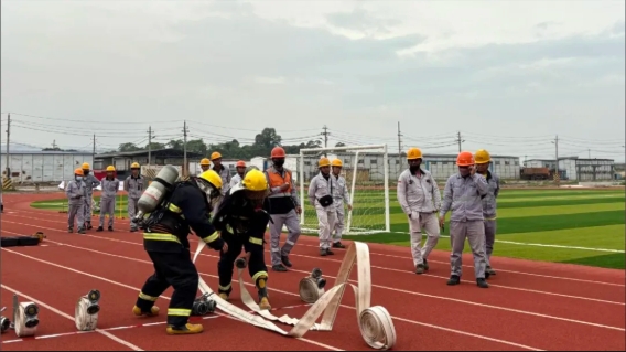 此外,消防应急技能竞赛是本次活动月的另一大亮点。竞赛现场,各参赛队员全神贯注,从消防水带的快速连接与铺设,到准确研判火情类型、正确使用灭火器材,再到模拟烟雾逃生演练及伤员紧急救护,每个关键步骤都被员工们熟练掌握,有序实施,整场比赛不仅是技巧的比拼,更是对实战能力的锤炼。