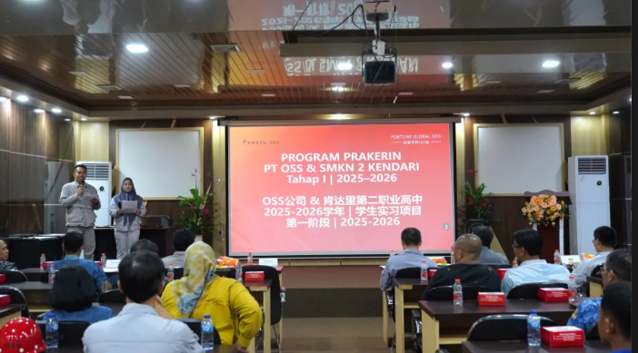10月17日,OSS公司举办肯达里第二职业高中学生实习启动仪式,标志着双方在产教融合和人才培养方面的合作正式开启。东南苏拉威西省教育与文化厅厅长Prof. Dr. Aris, S.Pd., M.Hum,科纳韦县人力资源与移民局局长Lidya Wulandari Nathan Marak, S.Si,肯达里第二职业高中校长Ahmad Mustapa, S.Pd以及 OSS 公司副总经理吴乾源共同出席仪式,见证校企政三方携手赋能本土人才成长的重要时刻。